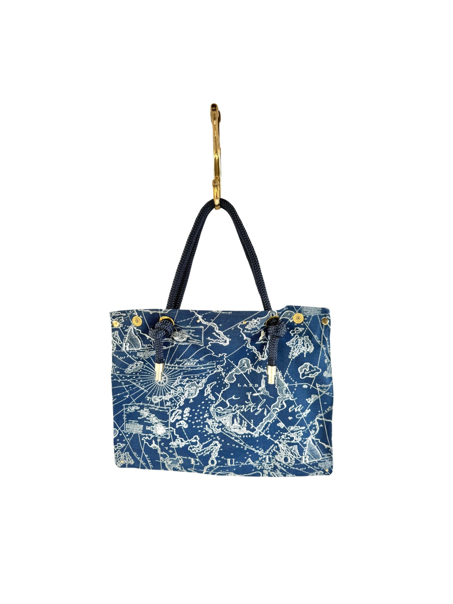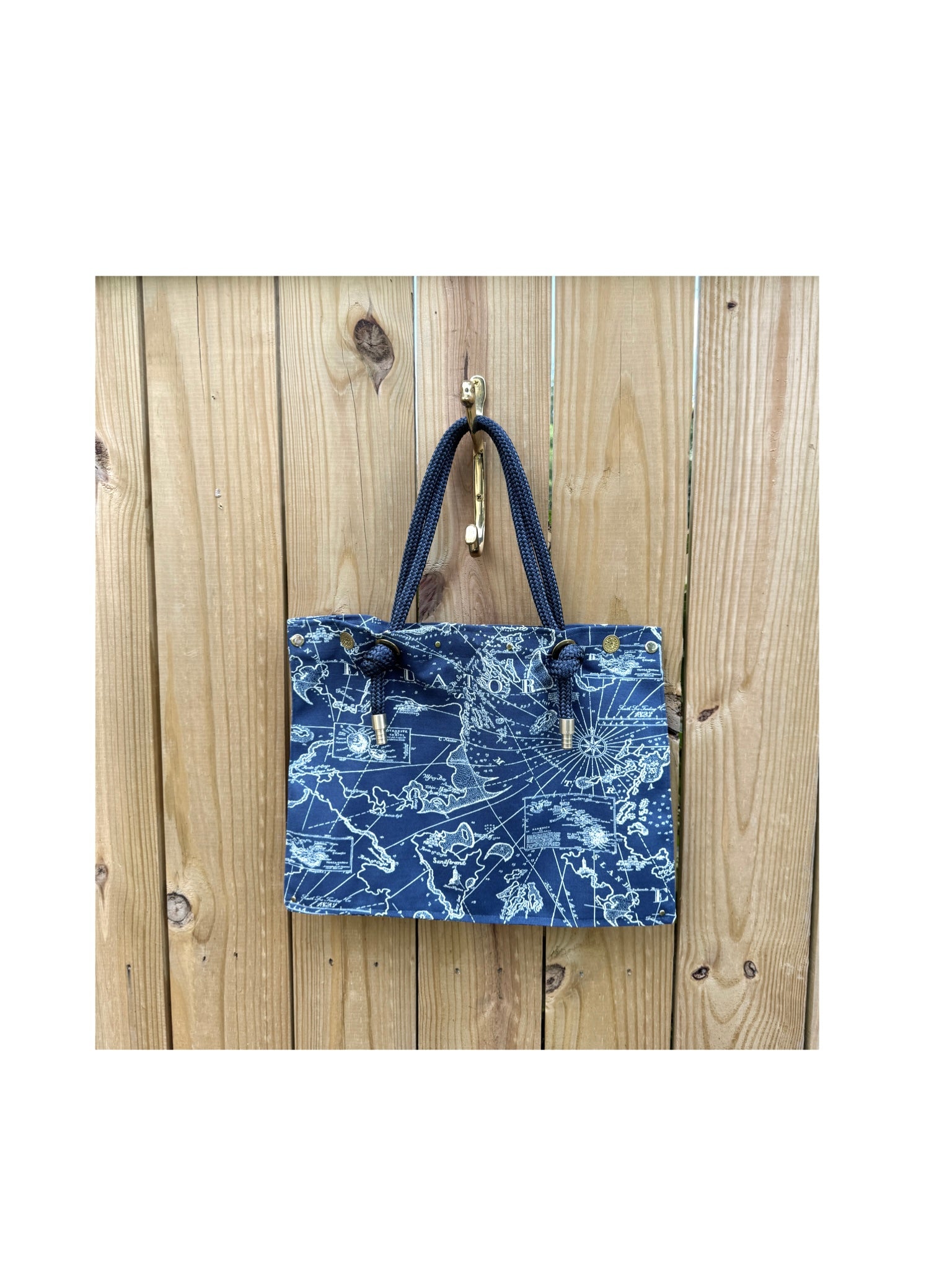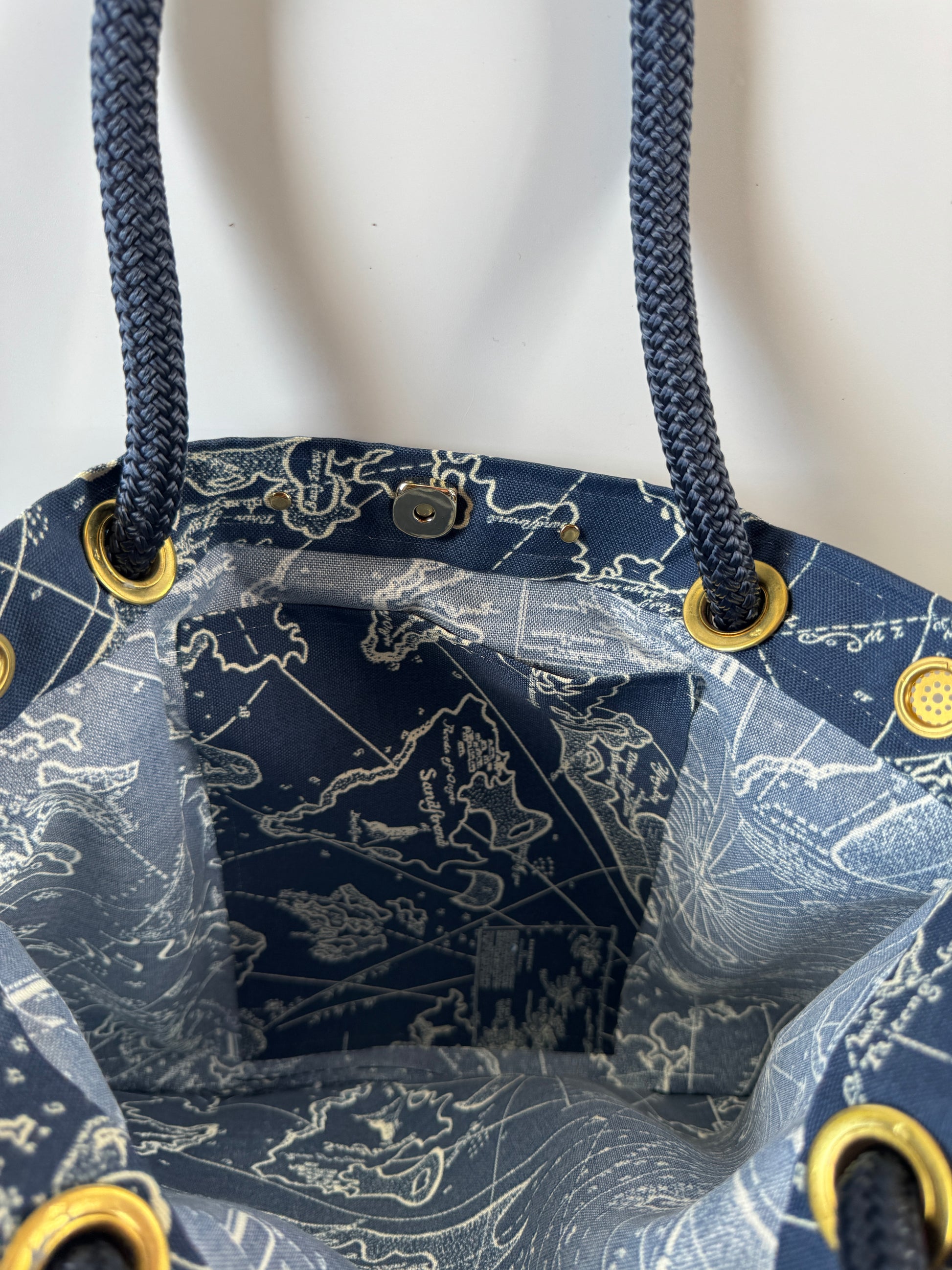 Premium Fabric in blue with nautical chart print - fabric is resistant to fading, stains, mold and mildew as well as water resistant.