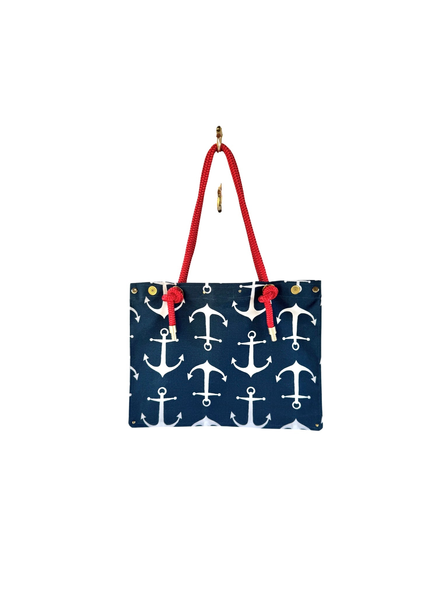 Premium Fabric in oxford blue with white anchor print - fabric is resistant to fading, stains, mold and mildew as well as water resistant.