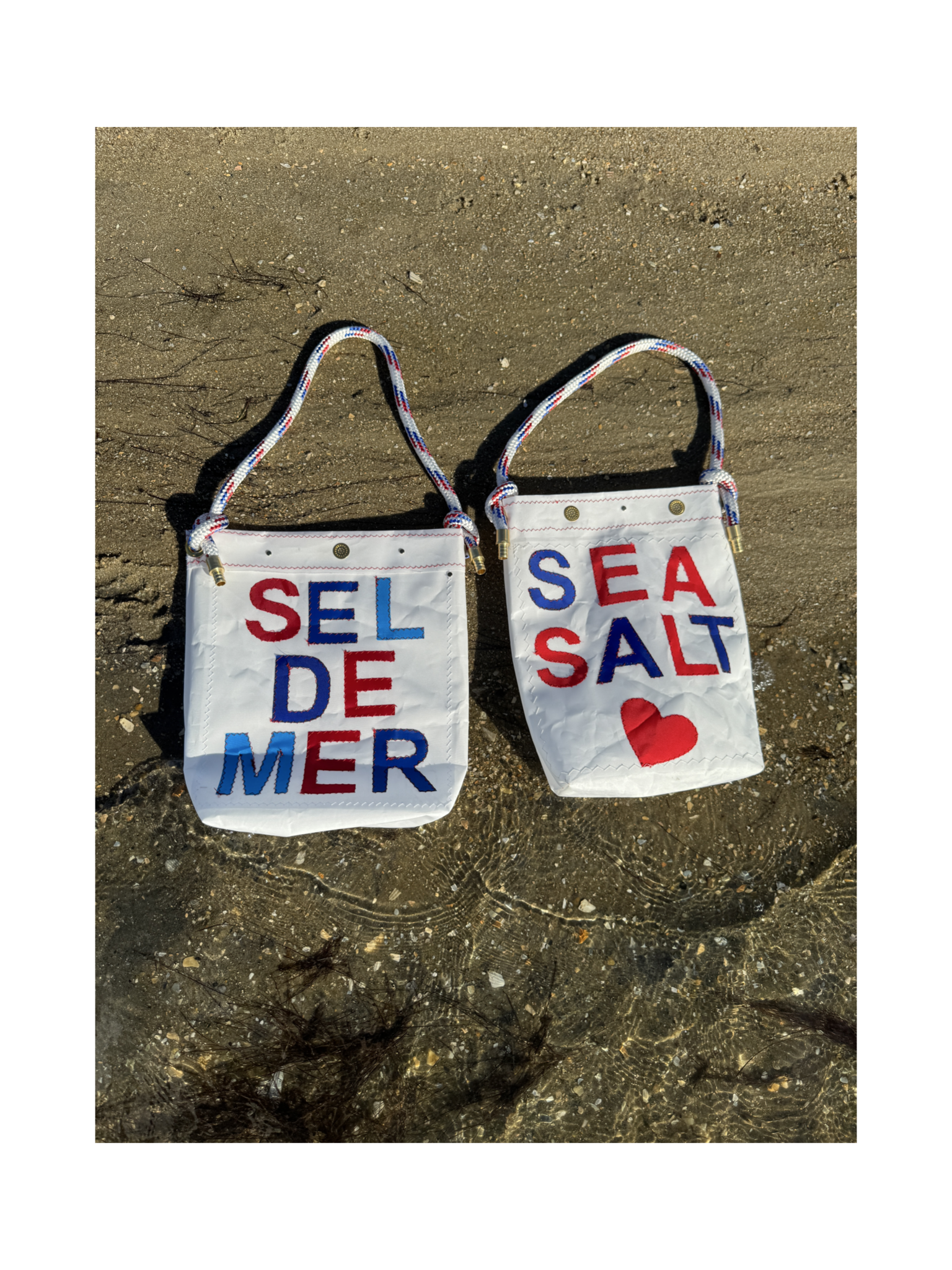 Sailcloth Bags are the ultimate beach and boat tote! Each bag is made from indestructible material and take 2-3 hours to make. The lettering is hand traced, hand cut and hand stitched. Each bag has a large interior pocket and partially lined.