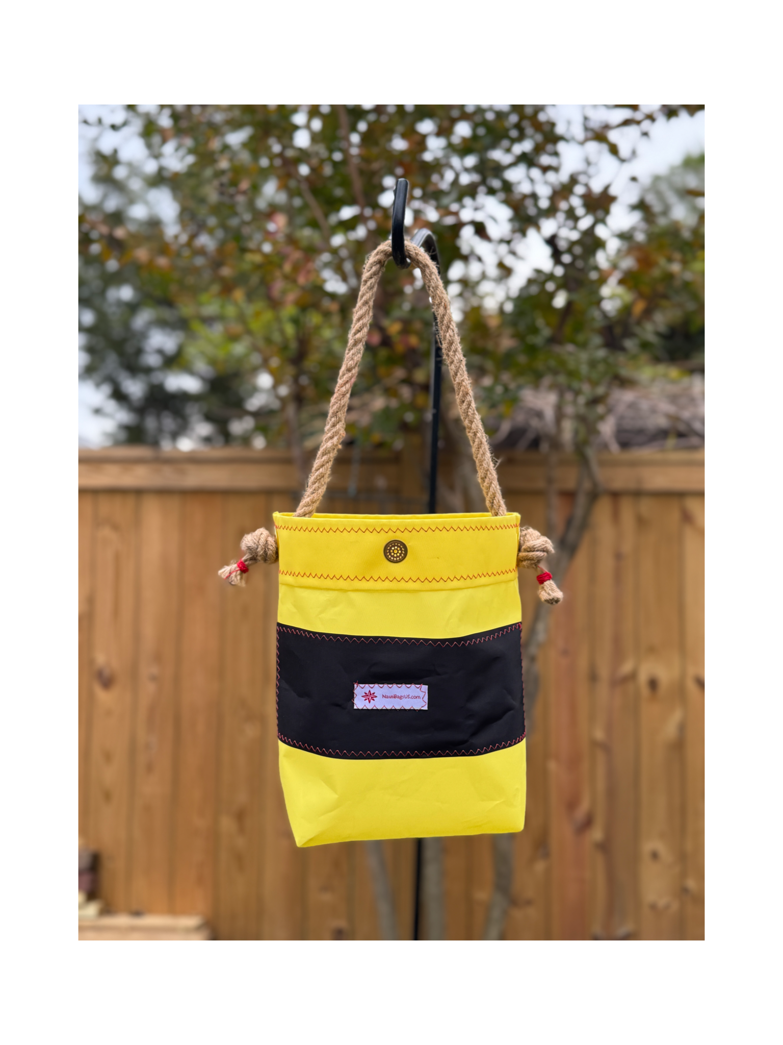 Cute, multicolored bag with sailboat and heart sun motif. Perfect for shell collecting, tackle, dog treat and knickknacks.