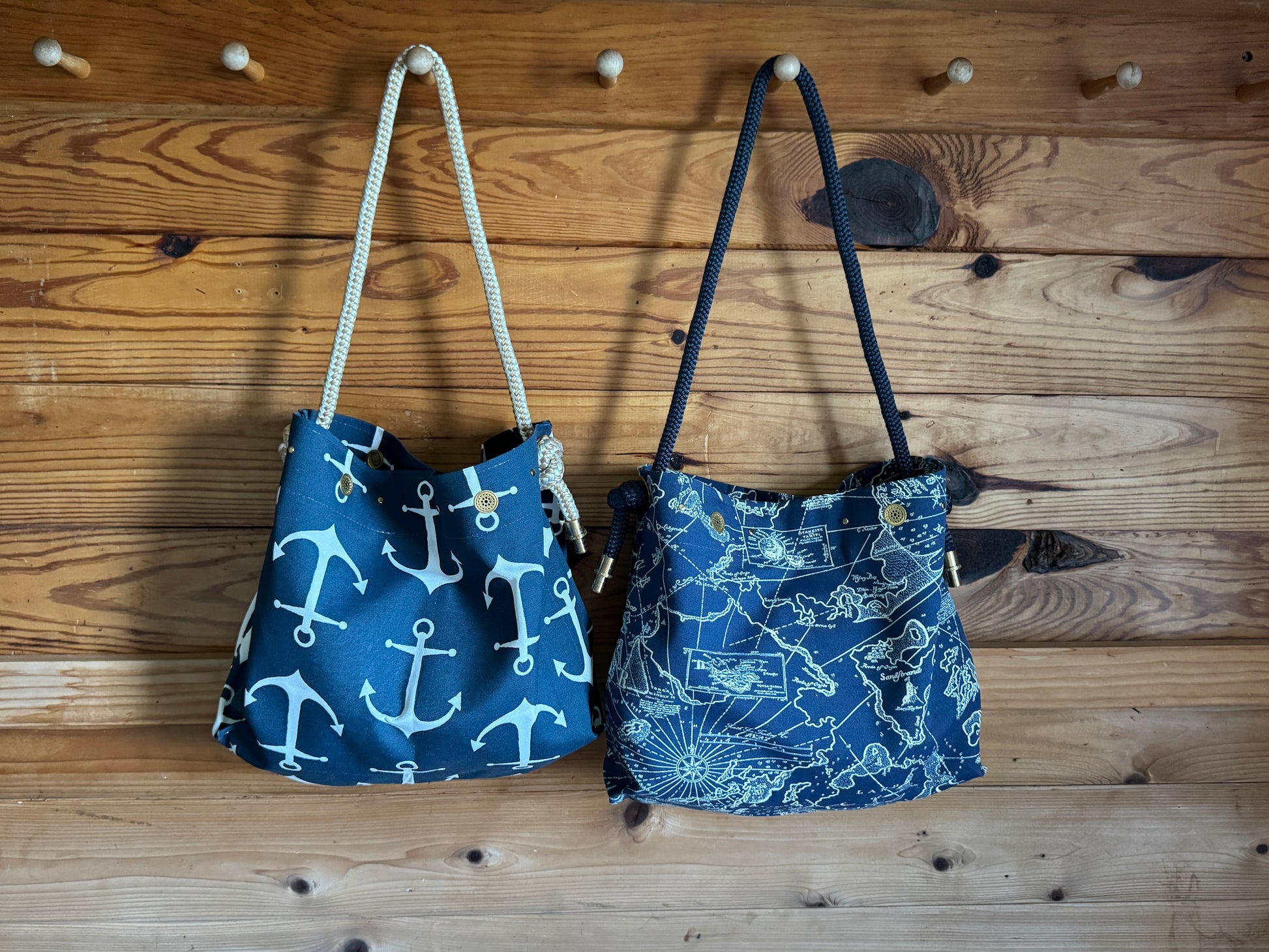 The Buoy is a mid size bag (between the Tall Buoy and The Shrimpy!) It's the perfect size bag for day trips to the beach, outings on the boat or for use in your every day life! Each bag has an internal pocket big enough for phones and more. All bags are handmade, please allow 5-7 days for production.