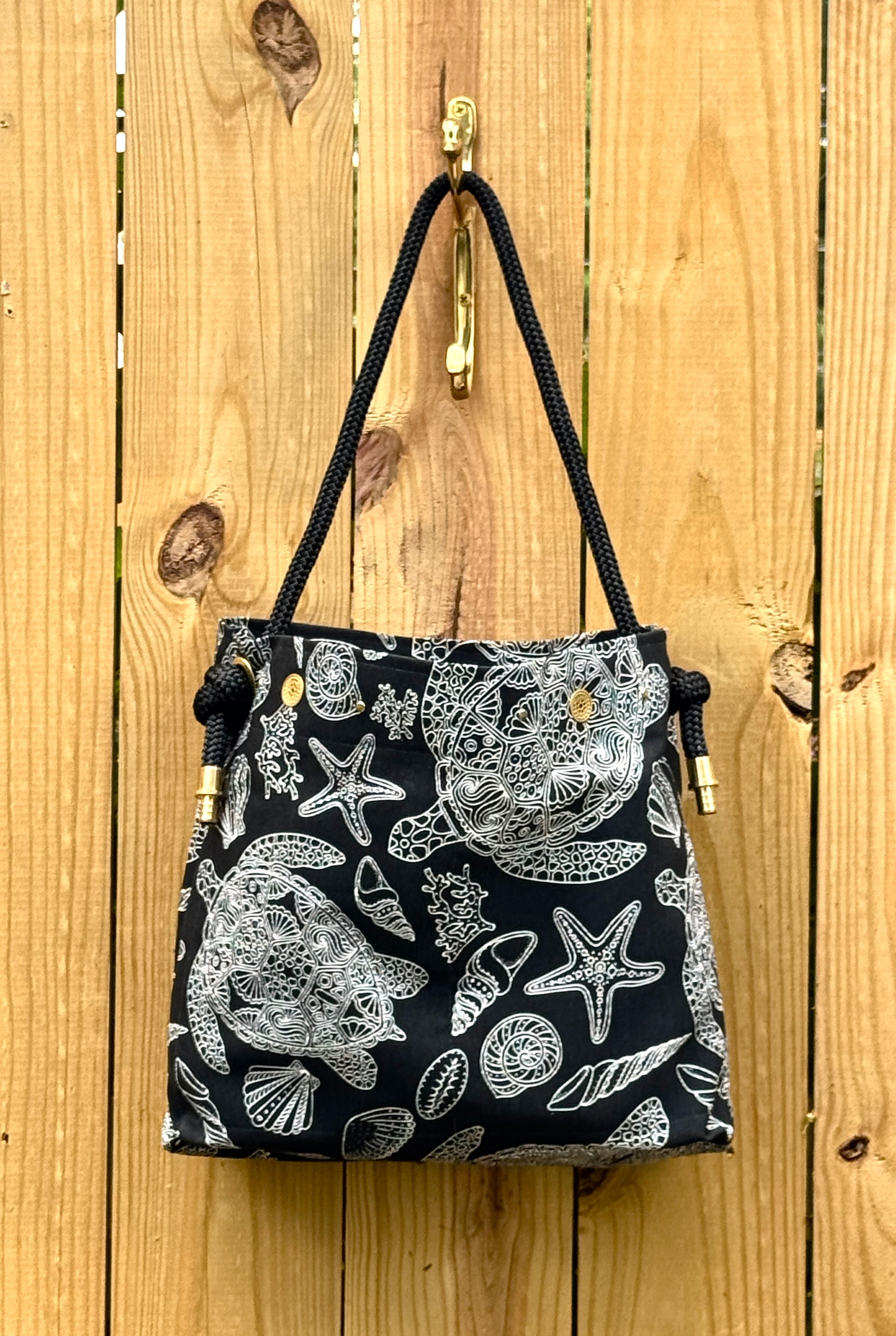 The Buoy is a mid size bag (between the Tall Buoy and The Shrimpy!) It's the perfect size bag for day trips to the beach, outings on the boat or for use in your every day life! Each bag has an internal pocket big enough for phones and more. All bags are handmade, please allow 5-7 days for production.