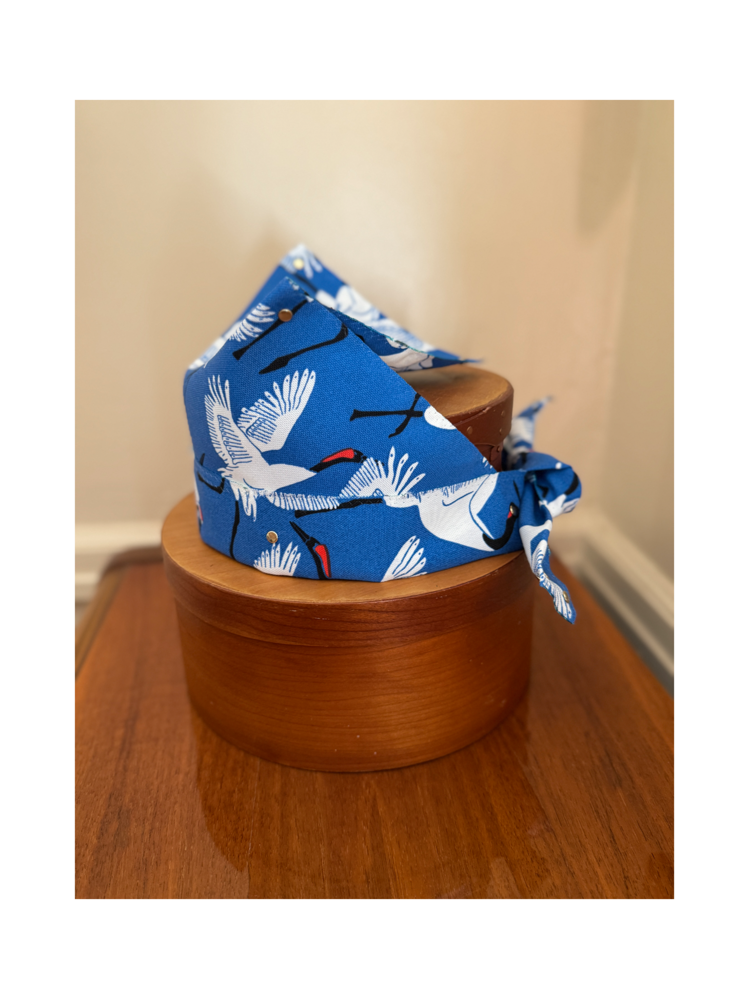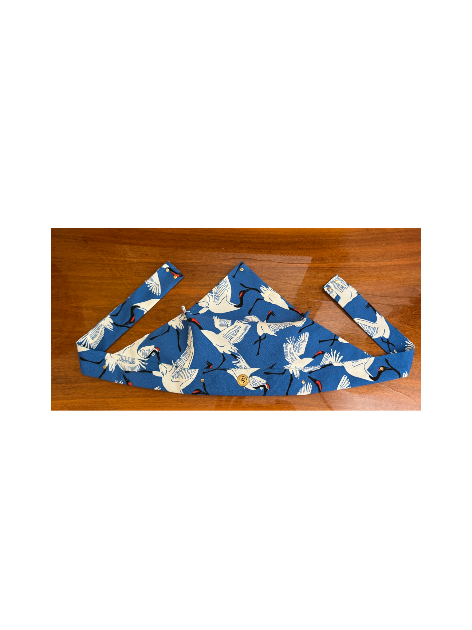 Premium Fabric in royal blue with white cranes. It is resistant to fading, stains, mold and mildew as well as completely water proof.
