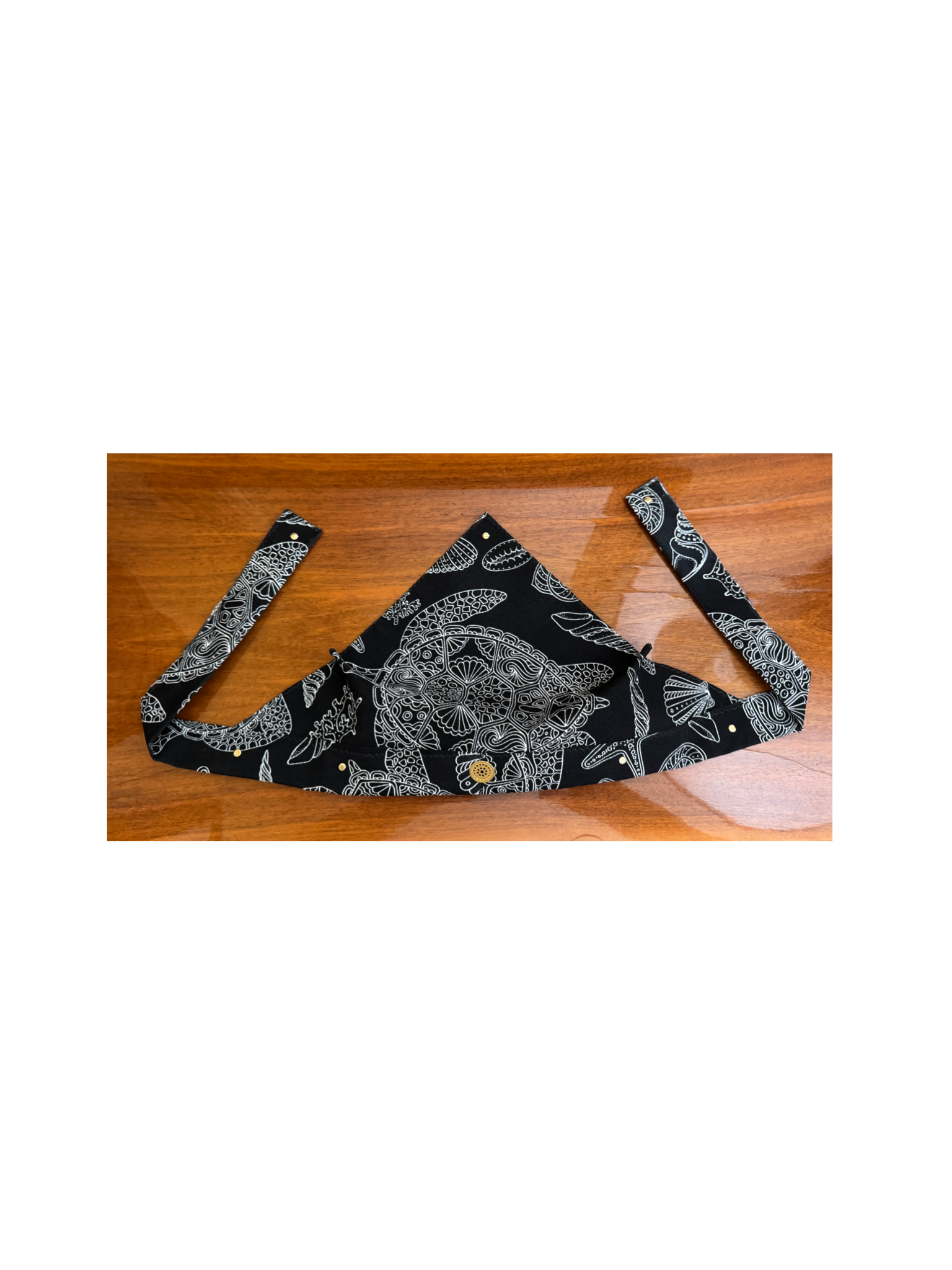 Premium Fabric in Black with Turtles and Shells, it is resistant to fading, stains, mold and mildew as well as completely water proof.